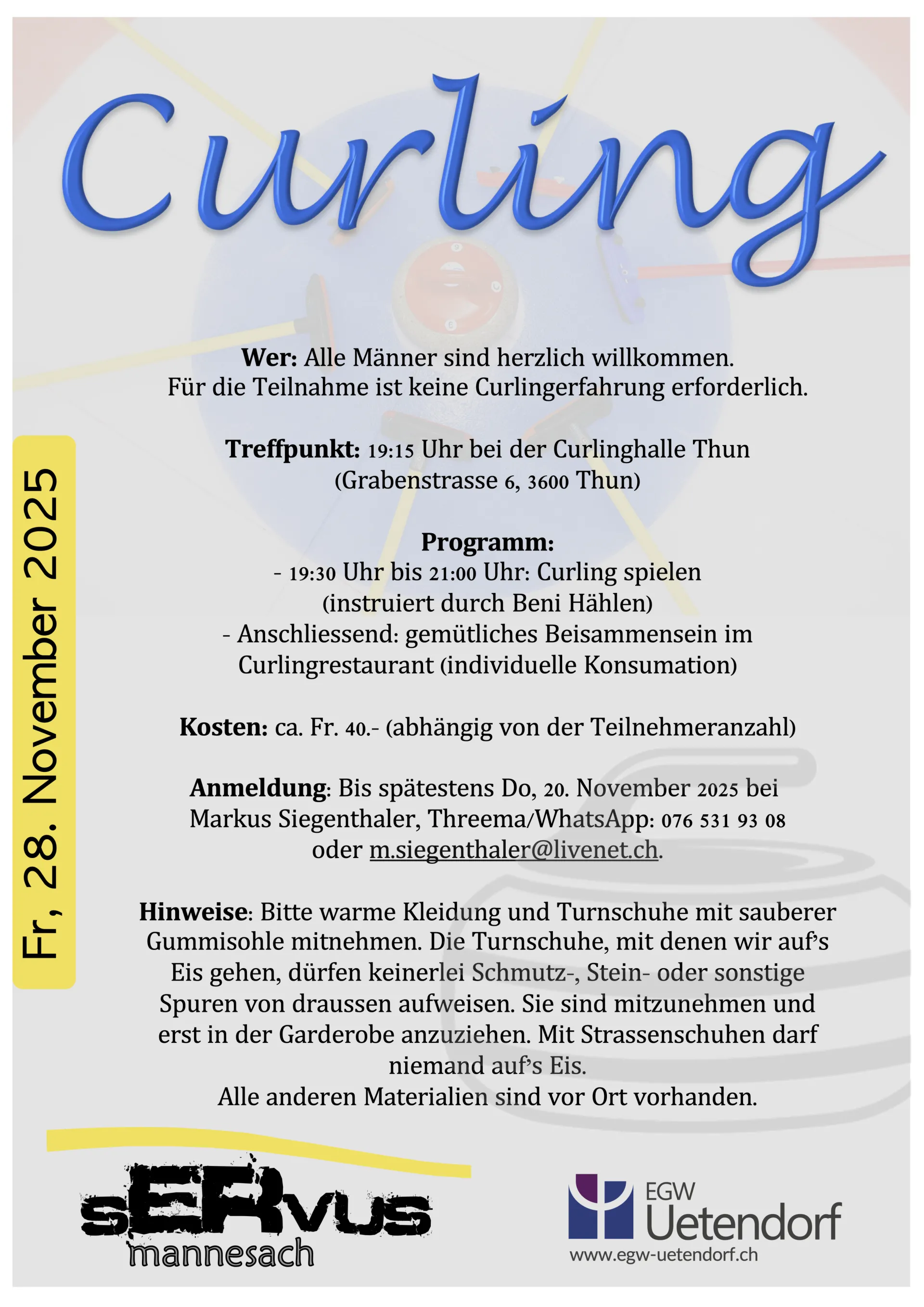 Jeder Mann, von jung bis alt, ist herzlich willkommen. Die Infos zum nächsten Anlass sind dem jeweiligen Flyer zu entnehmen.